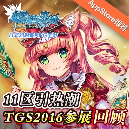 2016-09-309月15日至9月18日,日式幻想RPG手游《螺旋境界线》首度亮相TGS2016东京电玩展,完成它的处女秀:音乐总监Zeta和SS Idol Cos担当王奕萌出演的小啾亲临现场助阵,与海外玩家们进行面对