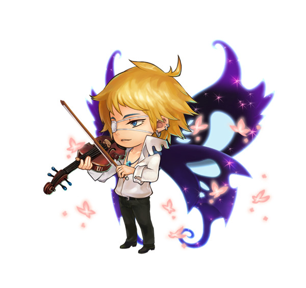 全新小伙伴蝴蝶男强势登录幸存者基地。其外形为金发碧眼的外国型男,干净的白衬衫,笔挺的西裤与闪亮的黑皮鞋让蝴蝶男高富帅的形象更为立体,右眼的眼罩更是丝毫没有影响他的绅士范,手里的小提琴即是他的演奏乐器也是作战武器。高富帅的形象结合文艺范的作战武器,让他收获一大票女粉丝的心。加上他自带华丽的蝴蝶背景,让蝴蝶男的外形更加拉风。