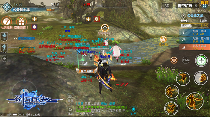公会军团烽火燃起,领土霸权荣耀巅峰。“领土争夺战”结束时获得积分最高的公会将获得该地图的领导权,公会名字将印在地图的图腾上进行展示,当玩家进入到该地图后,屏幕中间将显示出当前占领该地图的公会的名称,这就是公会实力的象征,荣耀的彰显。同时,占领公会的成员在该图内玩耍时,道具掉落的几率和经验获得量都会有大幅的提升哦。奖励极度诱人,各公会的战士们为此不顾一切奋力厮杀、激烈交战!听上去是不是极为过瘾?带上你的兄弟来《剑与魔法》,证明自己、争夺领土,建立属于自己的“王国”吧!