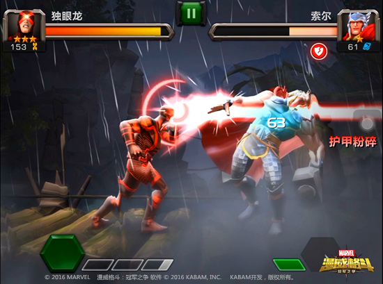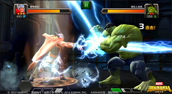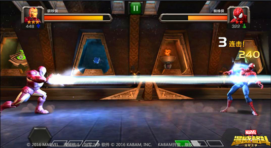 《漫威格斗》是一款由美国漫威公司正版授权,KABAM研发制作的以超级英雄为卖点热血格斗手游。由龙图游戏在大陆代理发行。本作的核心特色是全面收录了漫威旗下的超级英雄,受到了国内漫威爱好者的广泛关注;本作采用3D高清画质,高度还原了漫威超级英雄们的风采,同时为玩家提供了生动逼真的视觉享受;游戏以手机用户习惯的滑动和触碰为基础开发了专用的操作模式,无论是否格斗游戏高手都可以轻松地发动必杀技和连续技,充分享受超级英雄对战带给玩家的无穷乐趣。《漫威格斗》计划未来与漫威电影同步,尽可能多地将漫威旗下的超级英雄植入游戏内,不断为用户带来新鲜感与满足感。