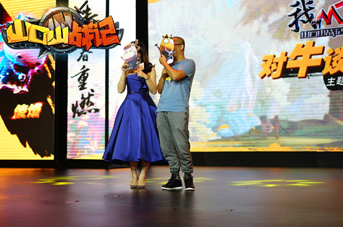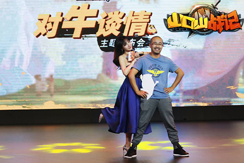 在MT大电影发布会现场,柳岩兴致勃勃的为MT大电影现场配音,并与核桃大玩模仿MT人物经典POSE的互动。发布会最后公布了大家最感兴趣的大电影6月17日提档的消息,作为MT大电影紧密的合作伙伴,也是大电影唯一授权手游《山口山战记》的发行方,龙图游戏常务副总裁师淑芳也共同参与了提档仪式,并与核桃合影留念。