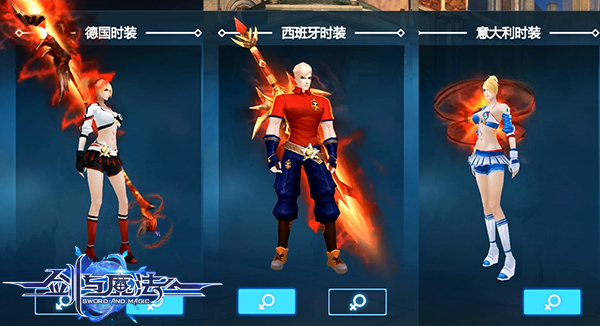 即便是在战斗中,男、女角色的每一个动作都充满活力,洋溢青春!因其贴身的设计,使角色人物在打斗中,更显移动的灵巧和招式的干脆!穿上欧洲杯主题时装,“剑魔”的勇士将充满激情与热血!胸肌、腹肌、二头肌,要哪有哪!小蛮腰、大美腿,瞬间化身足球宝贝!多彩绚烂的颜色,尽显青春、活力、激情的你!在这炎热酷夏,赶快亮出你的好身材,为你支持的球队,呐喊助威吧!!!
