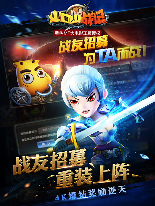 亿万MT粉丝共同期盼,我叫MT大电影正版授权,全新3D跑位战斗手游《山口山战记》,携史上最高福利战友招募系统全面开启“军团降临”公测!邀请好友共同开黑既送4K壕钻!激爽跑位畅快通关,酷炫点触释放大招,指尖微操体验次世代山口山之旅…放心坑队友,开心玩游戏,尽在山口山战记!