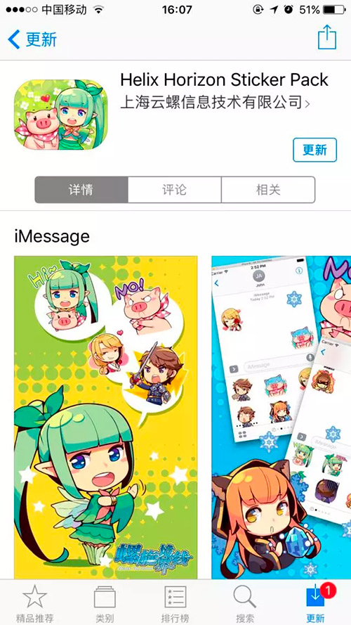 《螺旋境界线》iOS10 iMessage表情包更新啦!本次更新正式加入了gif,比原来的表情更Q萌,据说用了可以出UR喔!还不赶紧更新起来! App Store搜索:Helix Horizon Sticker Pack 就可下载啾~